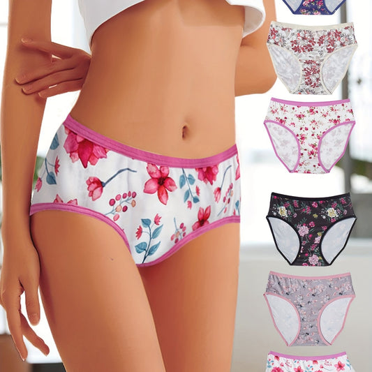 6pcs Women's Floral Print Seamless Briefs - Comfy & Breathable Polyester Blend, Stretchy Elastane, Non-Transparent, Machine Washable