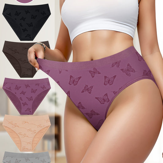 5-Pack Comfortable Soft Nylon Women's Triangle Underwear, Butterfly Pattern, Knit Fabric