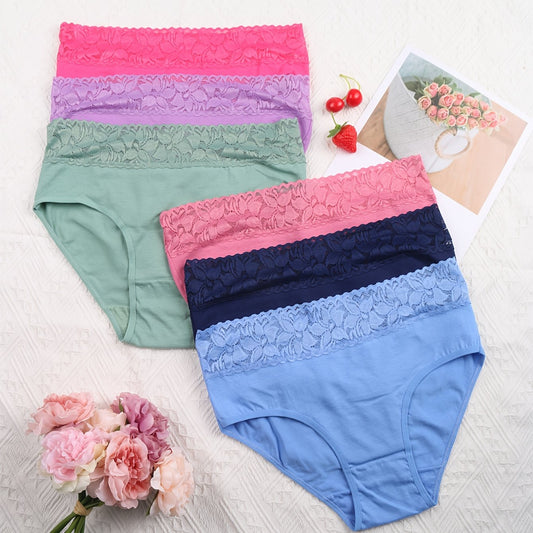 [6 Pack]Women's Underwear Bikini Panties Lace Soft Hipster Panty Ladies Stretch Full Briefs