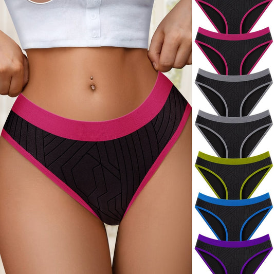 7pcs Contrast Trim Color Block Seamless Briefs, Sexy Comfy Breathable Stretchy Intimates Panties, Women's Lingerie & Underwear