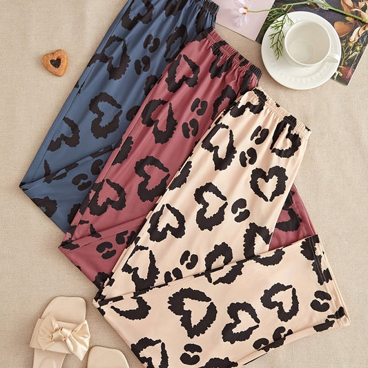3 Pcs Elastic High Waist Casual Allover Print Pajama Bottoms, Stretchy Fake Drawstring Pants for Women's Sleepwear & Loungewear
