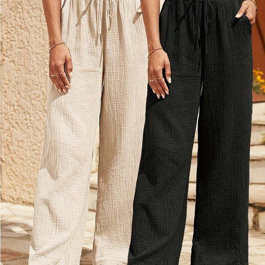 Chic Women's 2pcs Wide Leg Pants with Drawstring Waist