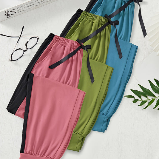 Women's 3pcs Casual Lounge Pants with Bow Detail - Comfy Polyester Blend, Elastic Waistband, Machine Washable