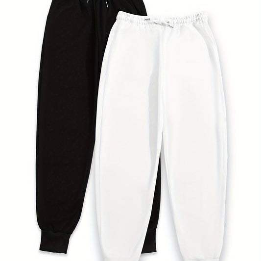 Two Pack Pants, Solid Drawstring High Waisted Sweatpants, Casual Every Day Pants, Women's Clothing